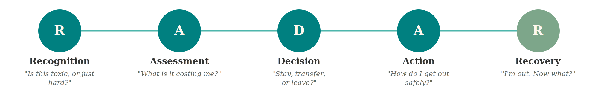 Documents the cumulative toll of working in a toxic environment: physical, psychological, professional, and relational. Most people in toxic workplaces have been minimizing the damage for so long it feels normal. This framework stops the minimizing and produces a clear accounting of what you have already spent.
